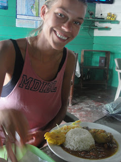 Sleepy and grumpy, I piled into the dingy with a much more jubilant crew. It was a wet, wet world and we set off to explore Bahia Solano, beginning with the loading docks. We ended up in one of the three-wheeled transportation devices for lack of a more accurate term, and made our rickety way into town. That was pretty cool. I sat in the front with the driver and my only comment was, "Hay mucha lluvia aqui, no?"